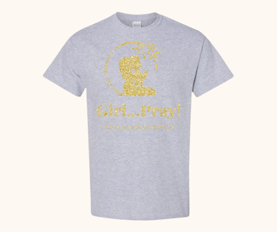 Girl… Pray! Tee – Gold Glitter Signature Logo
